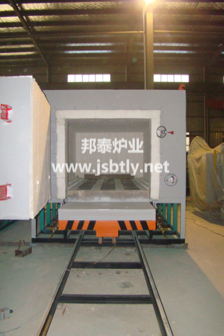 全纤维台车式液化气焙烧炉为燃气抽底式台车火焰炉,采用进口工业炉设备特点,经我厂根据我国国情和使用情况,在性能和技术上作进一步改进研发成功的,现已被几十家用户成功使用了多年,实践证明此产品技术非常成熟,根据用户使用信息反馈显示,它与原常规炉型相比显示出能耗显著降低、温度均匀、环境净化、维修方便等优点。