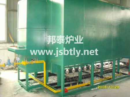 5、燃烧系统:在炉两侧各安装数十只小烧咀,采用多烧咀小热流在炉内往复循环,确保炉温均匀性。烧咀采用自动点火,仪表控制。