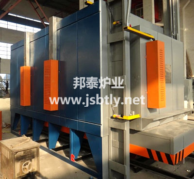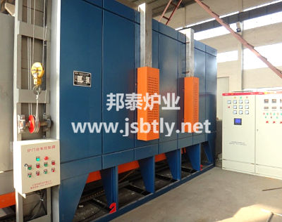 该设备为周期式热处理设备,带有热风循环系统,最高使用温度650℃,主要用于各种金属材料进行回火、退火和各种铸件的回火处理,与控制系统配合使用,可以自动控制设备的加热温度和台车进出。