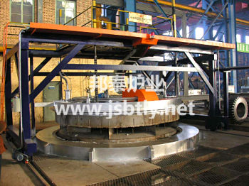大型井式环件法兰加热炉是我公司多年来根据锻造环件加热特制井式炉型,最大直径8.5米,拥有多种专利技术和实际制作经验,节能与老式炉型比较达到35%以上,我厂专为法兰环件企业生产了大批的井式炉和台车炉,同时已配备了集成控制,本炉是由炉体和一个可移动的炉盖及控制系统组成。