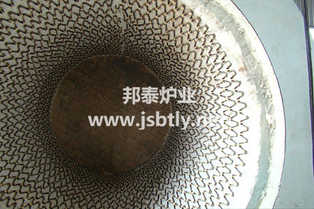 炉衬:炉衬为炉膛保温部分,采用全纤维结构,选用目前国内全新型标准型陶瓷纤维毯作为炉膛的隔热保温材料,该纤维毯是一种人造无机金属纤维材料,20世纪美国首先在加热炉上使用,由于其卓越的性能,各先进国家纷纷研制使用,我国在90年代得到较多的推广应用,在技术上已完全成熟可靠。近年来我公司加大了这方面的技术开发,已为众多用户生产制造了多种系列的近百台全纤维工业电炉,其中有电炉、气炉、油炉等,制作时使用专用设备按炉膛尺寸制作成折叠块,并在加工过程留有一定的压缩量,以保证折叠块在砌筑完毕后,每块陶瓷纤维块在不同方向膨胀,使折叠块之间互挤成无间隙的整体,达到完好蓄热效果,并且锚固件设置于炉体冷面,提高了纤维的耐高温强度。