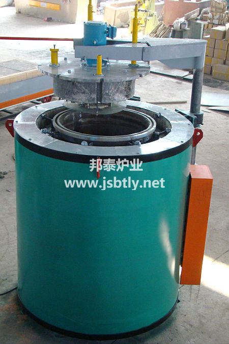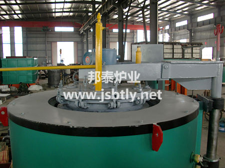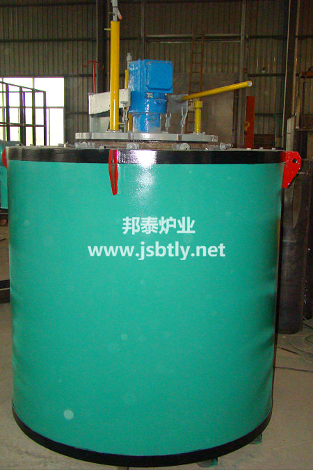 炉罐、装料筐材料有二种,一般采用耐热铸钢,高级的可采用耐热钢板焊接面成。炉顶部有一台轴流风机,有机液滴注装置也装在顶部, 炉盖上下运动是靠液压油缸实现的,炉盖打开后可吊入工件,炉罐与炉盖之间的用石棉盘根(现也有用耐火纤维盘根)密封。 一般大尺寸的电炉安装时需做地坑。配合现在流行的氧探头及碳控仪可精确控制炉内气氛,确保产品质量。