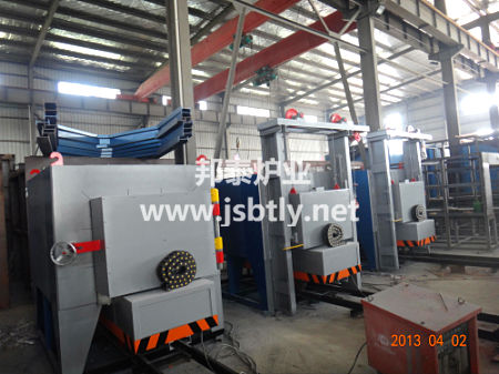全纤维台车炉(以下简称电炉),系周期作业式电炉,供一般金属机件或合金在空气中进行正火、退火、淬火等热处理加热之用。