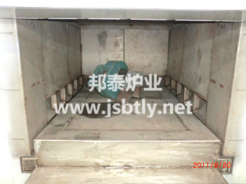 该设备为周期式热处理设备,带有热风循环系统,最高使用温度650℃,主要用于各种金属材料进行回火、退火和各种铸件的回火处理,与控制系统配合使用,可以自动控制设备的加热温度和台车进出。